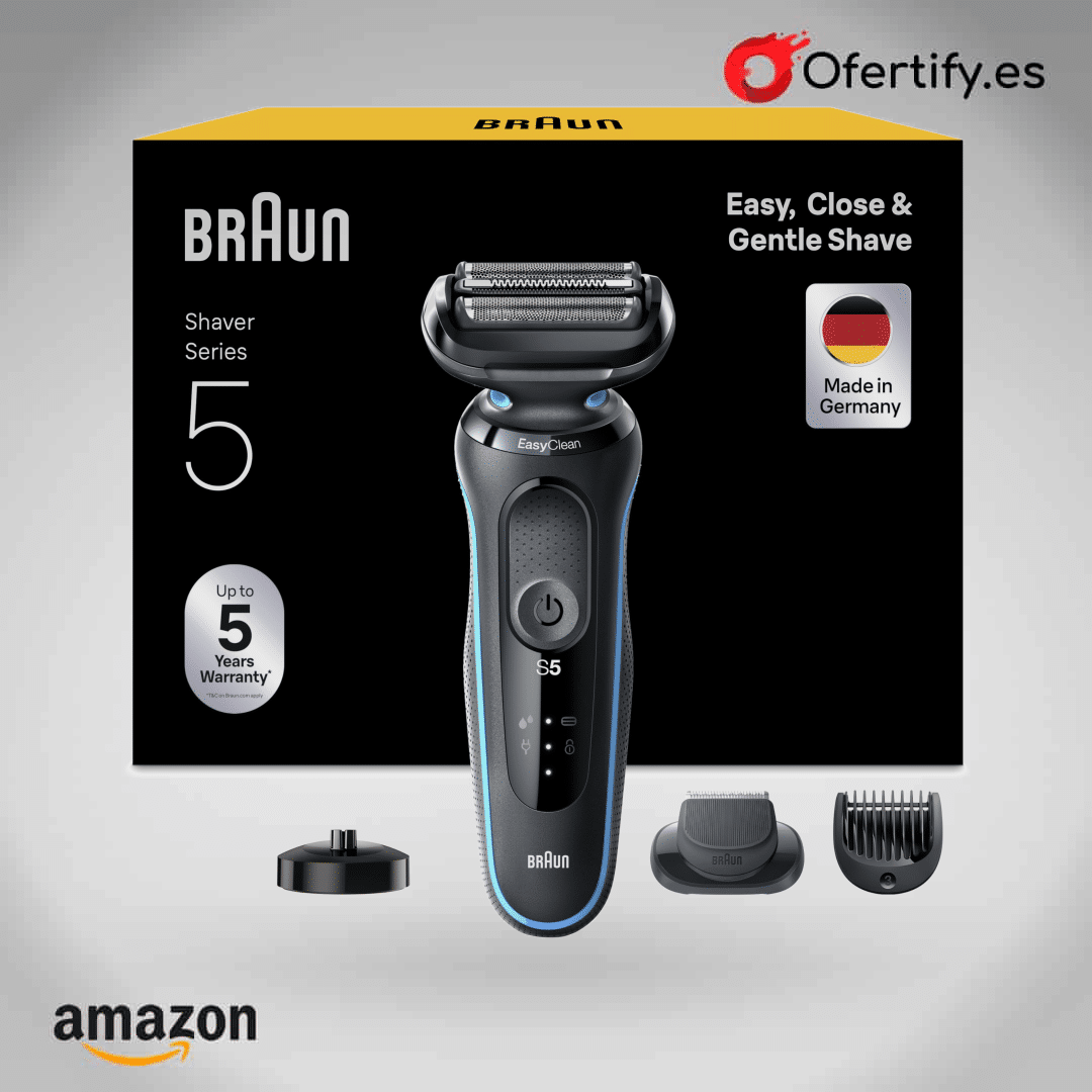 Descubre la Braun Series 5, la afeitadora eléctrica perfecta para hombres que buscan comodidad y precisión. Con cabezales y cuchillas flexibles, ofrece un afeitado suave y apurado. Incluye un accesorio cortabarba y base de carga, es impermeable, recargable y fácil de usar. Su diseño en gris y azul combina estilo y funcionalidad. ¡Haz clic ahora y experimenta una afeitada impecable todos los días con Braun!