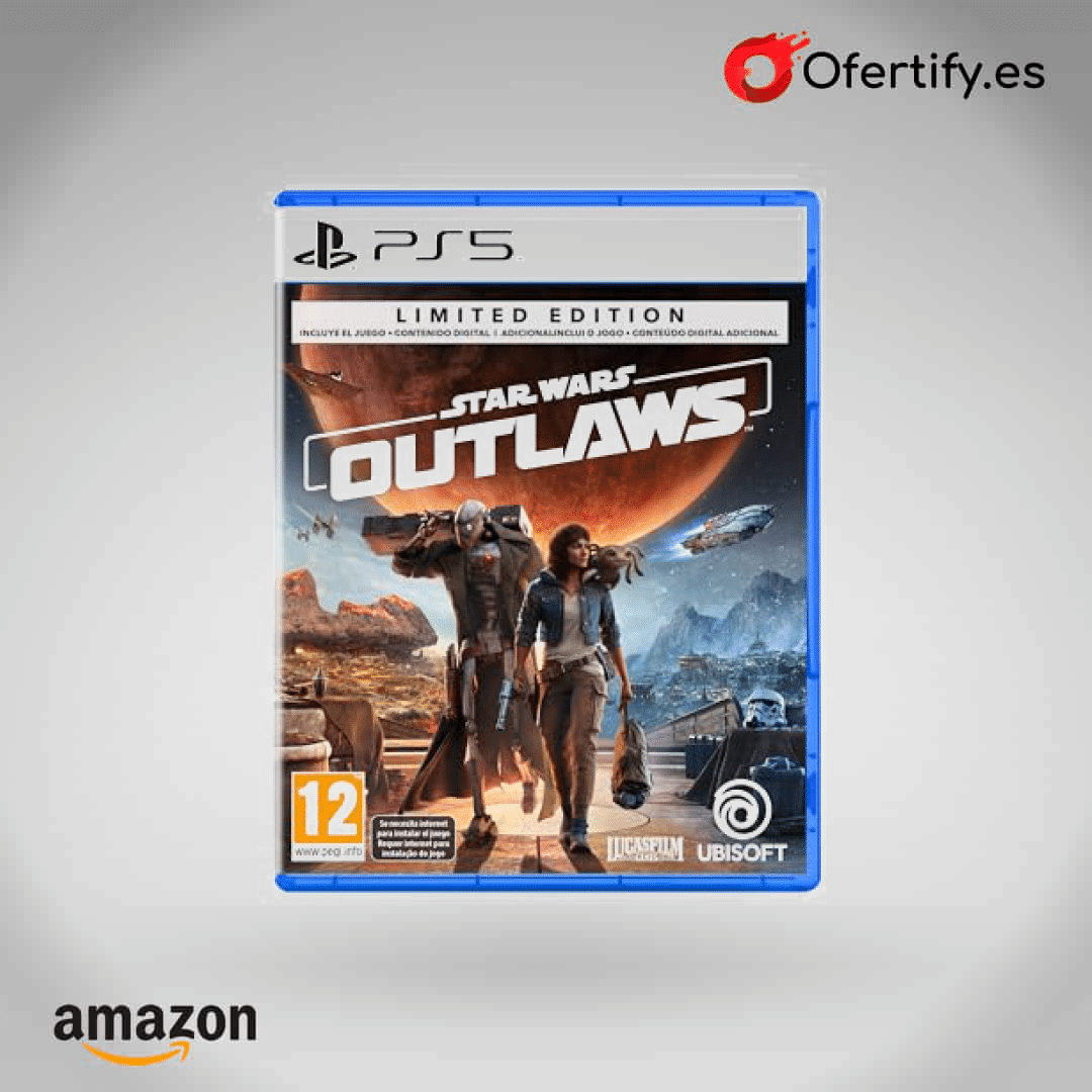 ¡Descubre la edición limitada de Star Wars Outlaws en PS5, exclusiva en Amazon.es! Con objetos cosméticos para Kay y Nix, vive la aventura en un mundo abierto lleno de ciudades vibrantes, paisajes épicos y peligros en cada esquina. Conviértete en una forajida audaz, completa misiones arriesgadas y pilota la Cazaestelas en combates espaciales emocionantes. ¿Estás listo para desafiar la galaxia y forjar tu destino? Haz clic ahora y sé parte de esta aventura única en Star Wars.