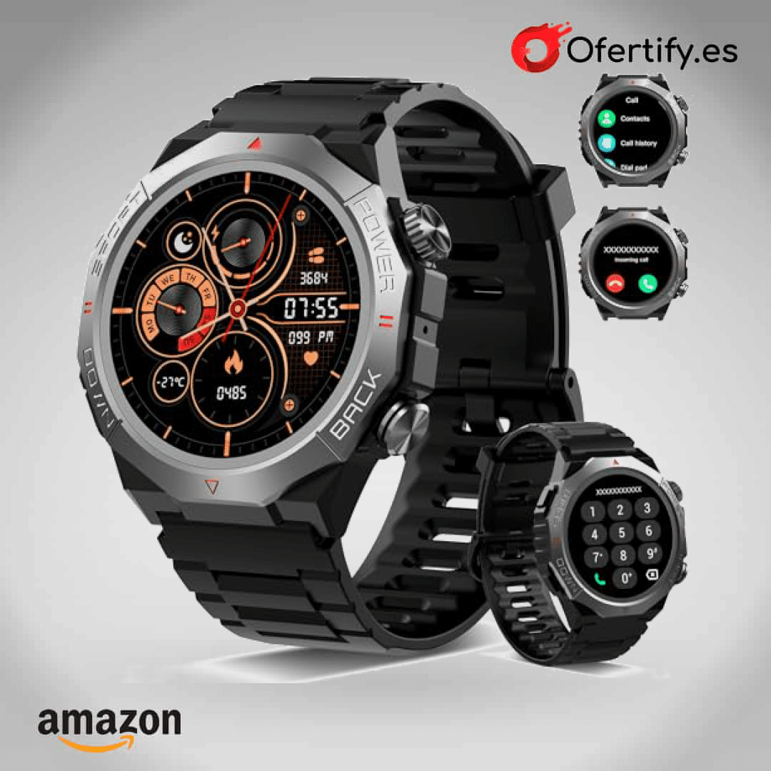 – Llamadas Bluetooth en modo dual: Equipado con el chip Bluetooth 5.4, el reloj ofrece una conexión más rápida y estable. Su altavoz integrado de 60 dB y el micrófono con cancelación de ruido garantizan llamadas claras y fluidas. Una vez conectado el reloj a tu smartphone, podrás recibir, realizar y colgar llamadas fácilmente.