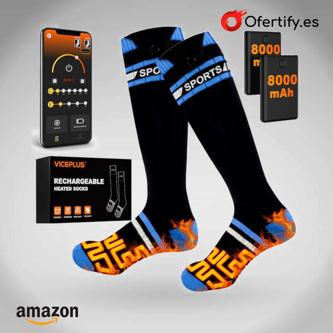 ¡Mantén tus pies cálidos y cómodos con VICEPLUS Calcetines Calefactables! Con una batería de 8000mAh, ofrecen hasta 10 horas de calor intenso y control total desde tu app o botones. Su área de calefacción de 360° garantiza una distribución uniforme, ideales para esquí, senderismo o caza. Flexibles, transpirables y fáciles de lavar, son perfectos para aventuras invernales. ¡Haz clic y prepárate para desafiar el frío con comodidad!
