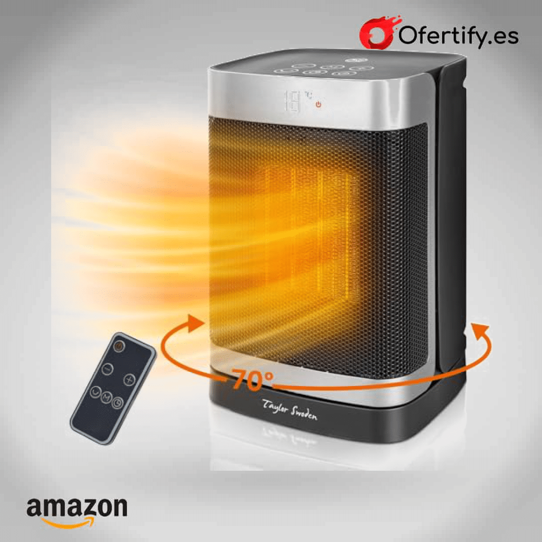 – [Pantalla táctil y mando a distancia] Controle el calefactor mediante su pantalla táctil que es muy intuitiva y útil o con el mando a distancia, que funciona a una distancia de hasta 6 metros. Dos formas de control que permiten ajustarlo, ya lo tenga cerca en escritorio o en el dormitorio, o a más distancia si está en el sofá. El calefactor eléctrico Taylor Swoden le permitirá calentarse de forma rápida y cómoda en invierno.