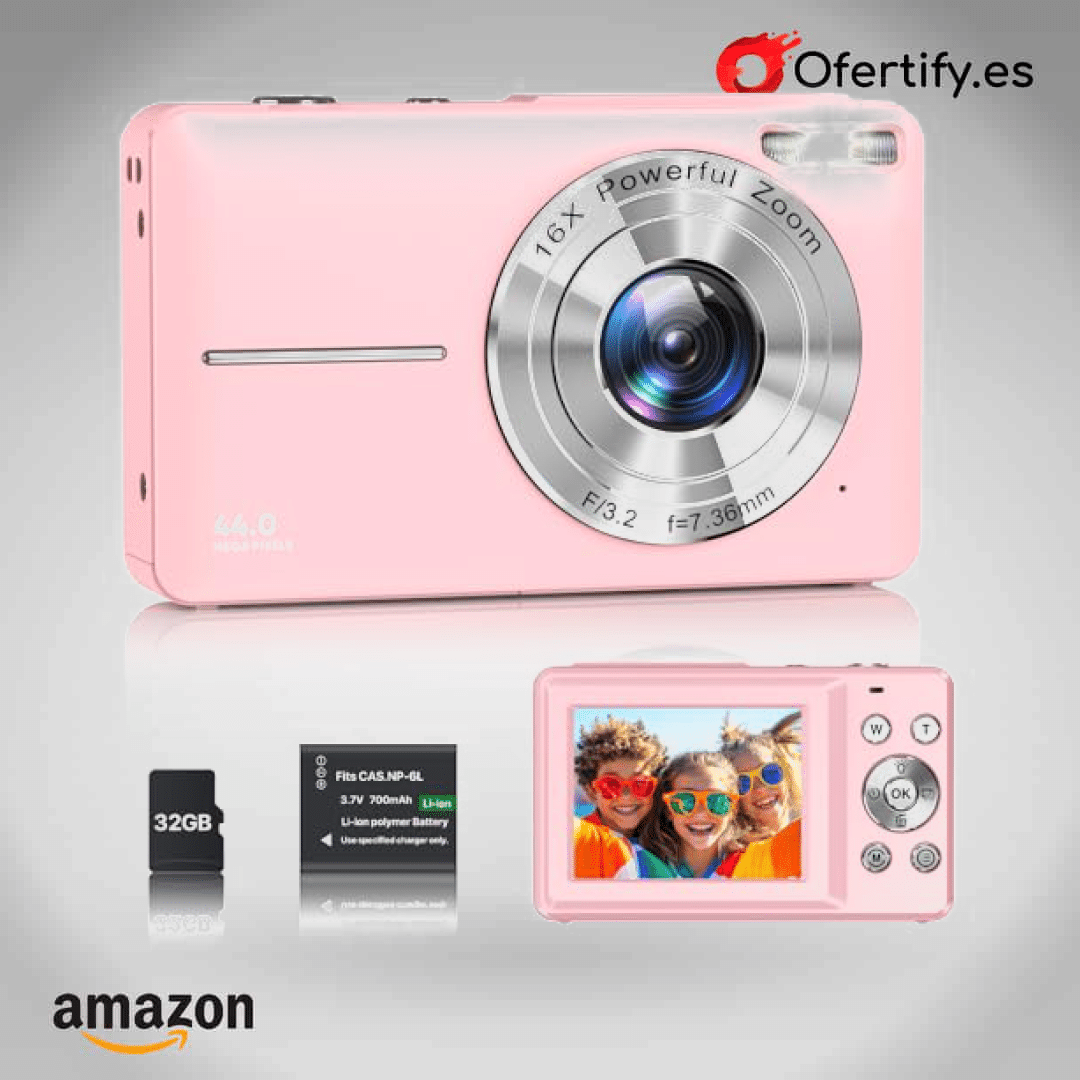 ¡Captura cada momento con la Cámara Digital 1080P Rose! Con 44MP, zoom digital 16x y grabación en 1080p, tus fotos y videos serán increíbles. Compacta, ligera y fácil de usar, perfecta para niños y adolescentes que quieren explorar la fotografía. Incluye tarjeta de 32GB, batería duradera y funciones divertidas como filtros y modo web. ¡Haz clic aquí y empieza a crear recuerdos inolvidables hoy mismo!