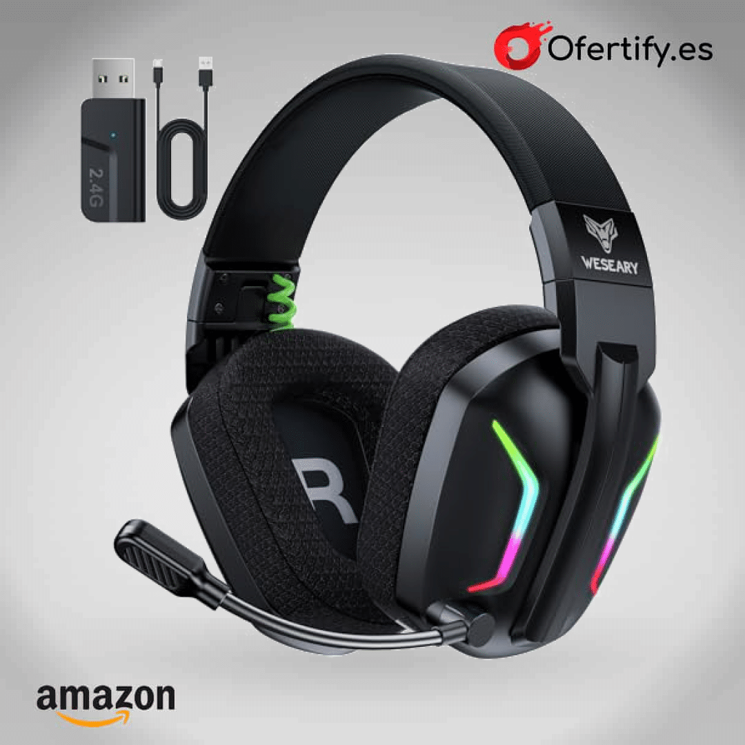 ¡Domina el mundo del gaming con los WESEARY WG1! Auriculares inalámbricos con sonido envolvente 3D, micrófono con cancelación de ruido y duración de 50 horas. Disfruta de modos de EQ para juego o música, compatibilidad multiplataforma y diseño ergonómico para largas sesiones. Ilumina tu experiencia con luces LED y vive cada momento con claridad y comodidad. Haz clic ahora y lleva tu juego al siguiente nivel. ¡No te lo pierdas!