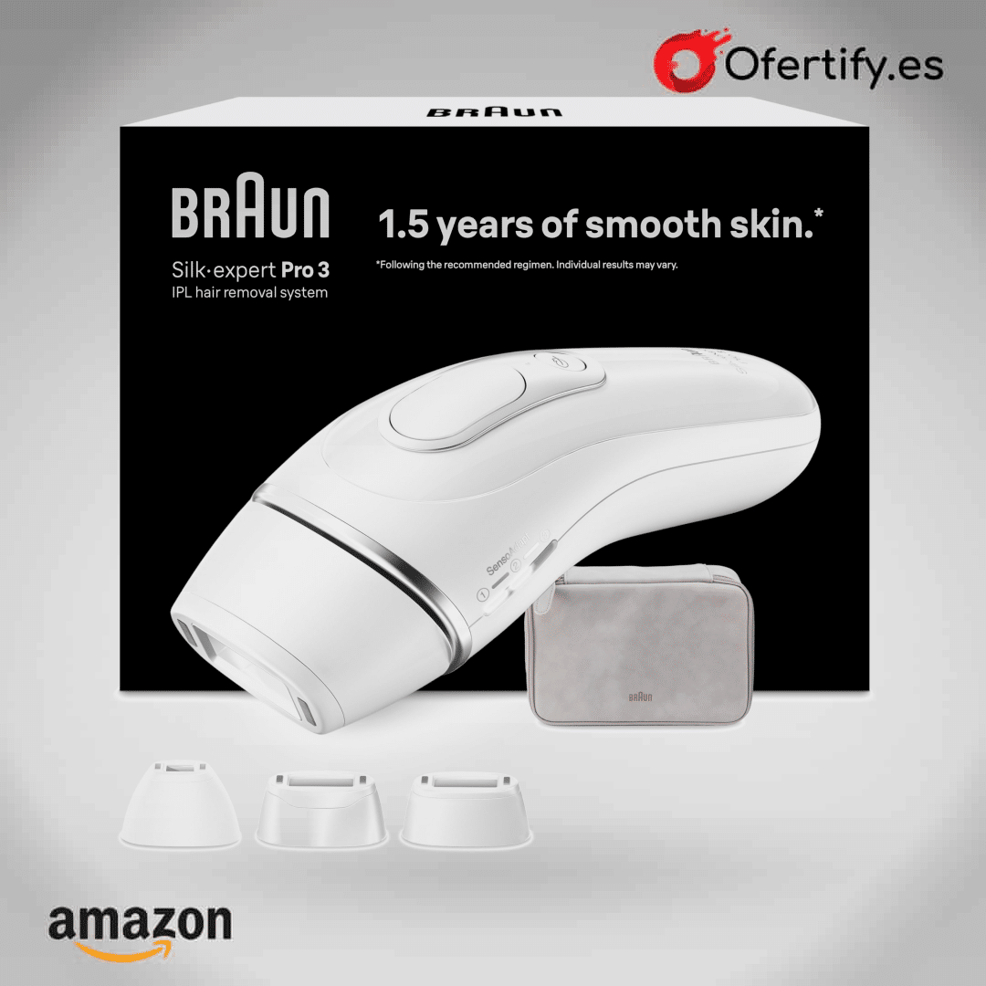 ¡Despídete del vello no deseado con la Braun Luz Pulsada Silk-expert Pro 3! La alternativa perfecta a la depiladora láser, elimina el vello en casa de forma rápida y segura. Incluye funda y 3 cabezales para cara y cuerpo, adaptándose a tus necesidades. Disfruta de una piel suave y libre de vello en menos sesiones. ¡Haz clic ahora y descubre la solución definitiva para una depilación eficaz y cómoda!