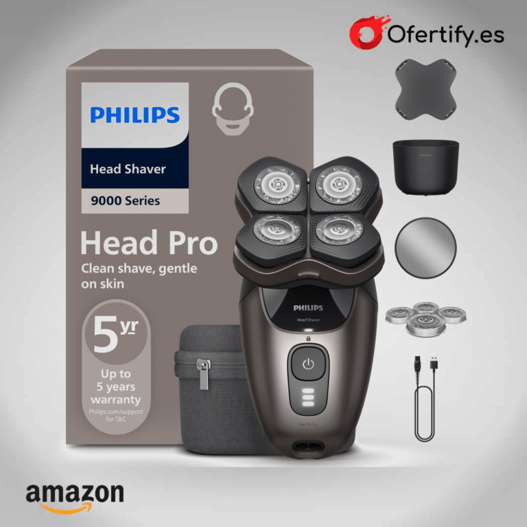 Descubre la Philips Serie 9000 Pro HS998015, la afeitadora de cabeza perfecta para hombres y mujeres Su cabezal flexible 360 y cuchillas ComfortCut garantizan un