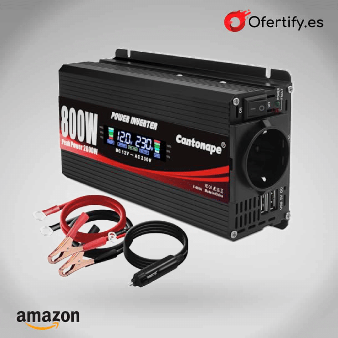 – Inversor de corriente del coche 800W, potencia pico 2000W(<10ms) convierte DC 12V a AC 220V. Alta calidad con certificación CE. - Pantalla LCD inteligente, (mostrar voltaje de entrada, voltaje de salida), enchufe coche, dual USB, Toma europea - ENTRADA DE 2 VÍAS: cuando conduce, conéctelo al encendedor de cigarrillos, puede proporcionar hasta 150 vatios de potencia continua; Cuando esté en un campamento, puede conectarlo directamente a la batería del automóvil, entregará hasta 800W de potencia continua - 6 Protección: sobrecarga, cortocircuito, polaridad inversa, baja tensión, sobretensión, sobrecalentamiento. - Contenido del paquete: inversor de 800W, manual de usuario, 12 meses de garantía y 100% de atención al cliente¿Necesitas energía confiable en tu coche, caravana o barco? Este inversor de corriente de 800W (pico de 2000W) convierte fácilmente 12V DC en 220V AC, con pantalla LCD inteligente y puertos USB dual. Ideal para camping, viajes o emergencias, ofrece protección contra sobrecarga, cortocircuito y más. Conéctalo al encendedor o directamente a la batería y disfruta de potencia continua. ¡Haz clic aquí y lleva la energía a donde vayas!