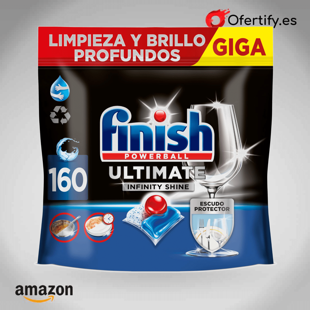 ¡Descubre Finish Powerball Ultimate Infinity Shine! Con su fórmula potente, elimina grasa y manchas difíciles, protegiendo tus cristales para un brillo impecable. Incluye 2 packs de 80 pastillas, ¡un total de 160 unidades! Ahorra tiempo y esfuerzo en cada lavado, logrando resultados profesionales en casa. Haz clic ahora y disfruta de platos limpios, relucientes y protegidos. ¡No esperes más para experimentar la diferencia!