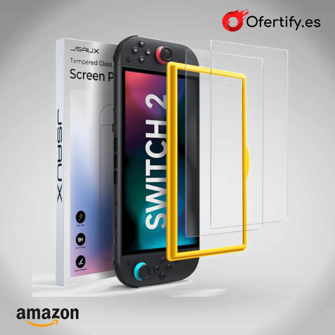 Protege tu Nintendo Switch 2 con el set de 2 protectores de pantalla JSAUX. Con dureza 9H, resistencia a arañazos y cobertura completa, garantizan una protección duradera. Su acabado antirreflejo mejora la visibilidad en cualquier condición y su instalación fácil y sin burbujas te ahorra tiempo. Además, mantienen la sensibilidad táctil y repelen huellas. ¡Haz clic ahora y asegura la mejor protección para tu consola!