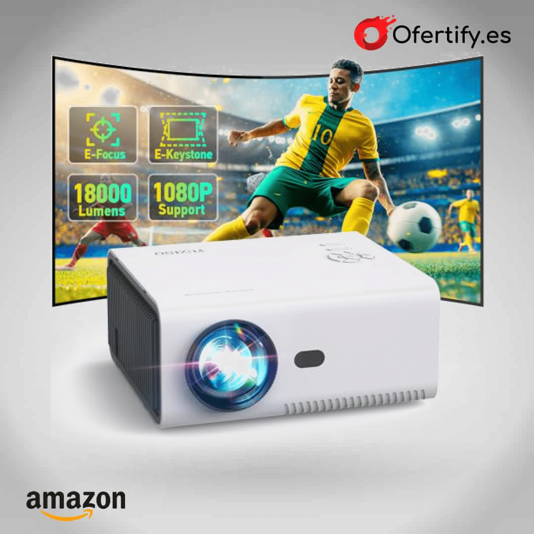 – 【Actualice Su Experiencia Visual】 El mini proyectores tiene una calidad de imagen más nítida y detallada con una resolución de hasta 1920 x 1080 (nativa 1280 x 720). Con 18000 lúmenes, las imágenes brillantes y claras están garantizadas, apto para varios escenarios (ideal para los entornos tenues). El ratio de contraste 10000:1 y el de aspecto de 4:3/16:9 mejoran aún más la profundidad de imagen y la vibración del color. Es un proyector de cine tanto apto para uso exterior como uso interior.