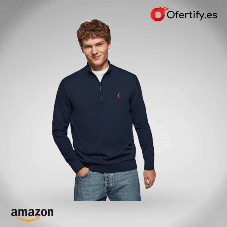 Jersey básico para hombre de cuello alto y cremallera, Acabados acanalados en cuello, puños y cintura, Diseñado con un corte cómodo y práctico, Confeccionado en