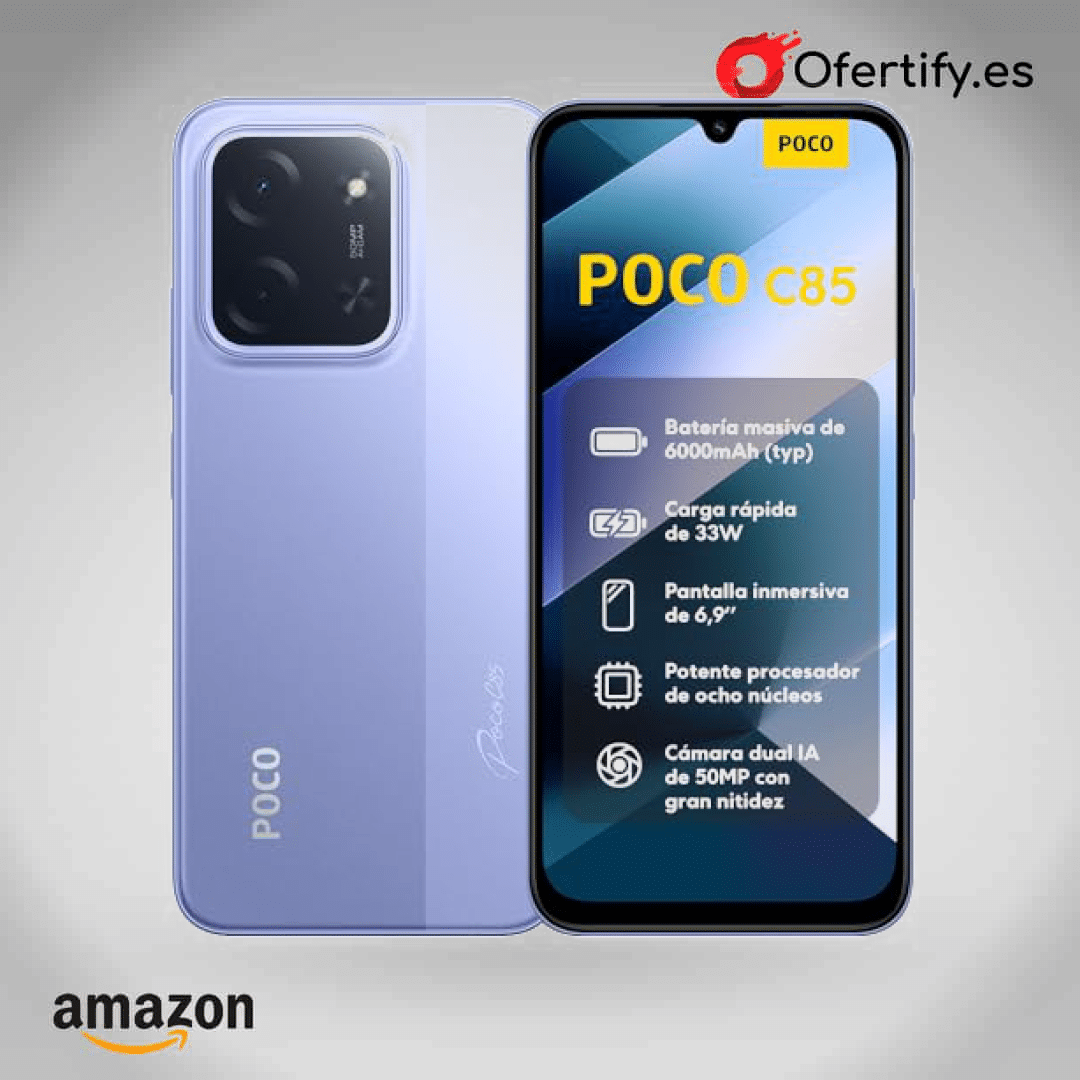 Descubre el XIAOMI POCO C85, el smartphone perfecto para potenciar tu dĂa a dĂa. Con 8GB de RAM y 256GB de almacenamiento, cámara dual de 50MP con AI, pantalla inmersiva de 6,9” y un potente procesador Octa-Core, vivirás experiencias increĂbles. Su baterĂa de 6000mAh y carga rápida de 33W te acompañarán sin preocuparte. ¡Haz clic y lleva la innovaciĂłn a tus manos en elegante color morado!